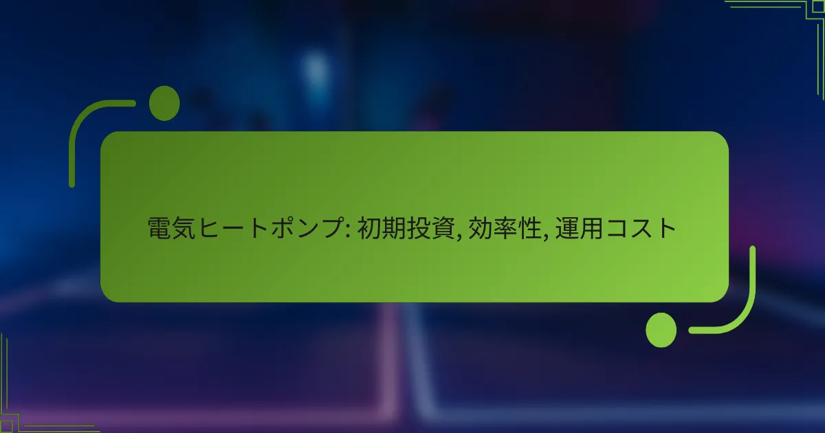 電気ヒートポンプ: 初期投資, 効率性, 運用コスト