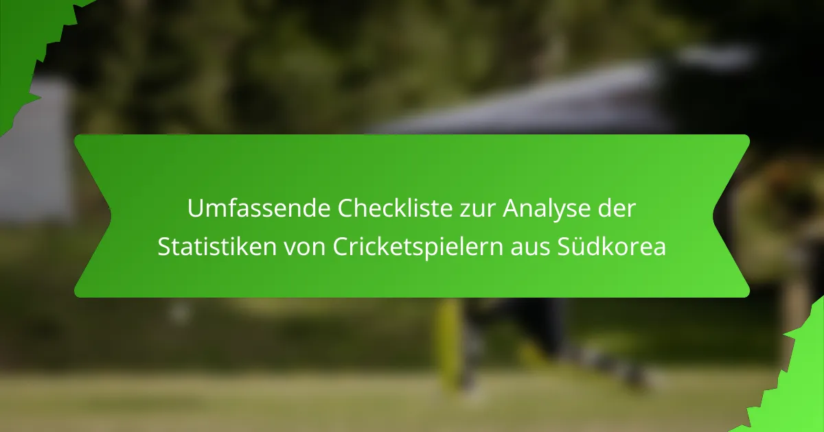 Die Analyse der Statistiken von Cricketspielern aus Südkorea ist entscheidend für das Verständnis ihrer Leistung und Beiträge zum Team. Wichtige Kennzahlen wie Schlag- und Bowlingdurchschnitte, Feldstatistiken und Spielleistungen bieten wertvolle Einblicke in die Effektivität jedes Spielers. Durch die Nutzung verschiedener Werkzeuge und Ressourcen kann man diese Statistiken im Kontext von Wettbewerb und Format interpretieren, wodurch Stärken und Verbesserungsbereiche sichtbar werden.