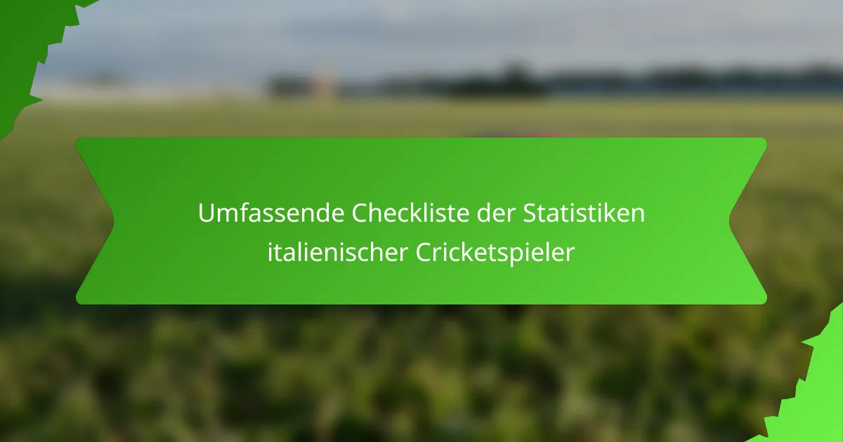 Die wichtigsten Statistiken italienischer Cricketspieler umfassen verschiedene Leistungskennzahlen, einschließlich Schlagdurchschnitte, Bowlingdurchschnitte, Feldstatistiken, Spielauftritte und Rekorde. Diese Statistiken bieten Einblicke in die Beiträge und die Effektivität der Spieler im Sport.